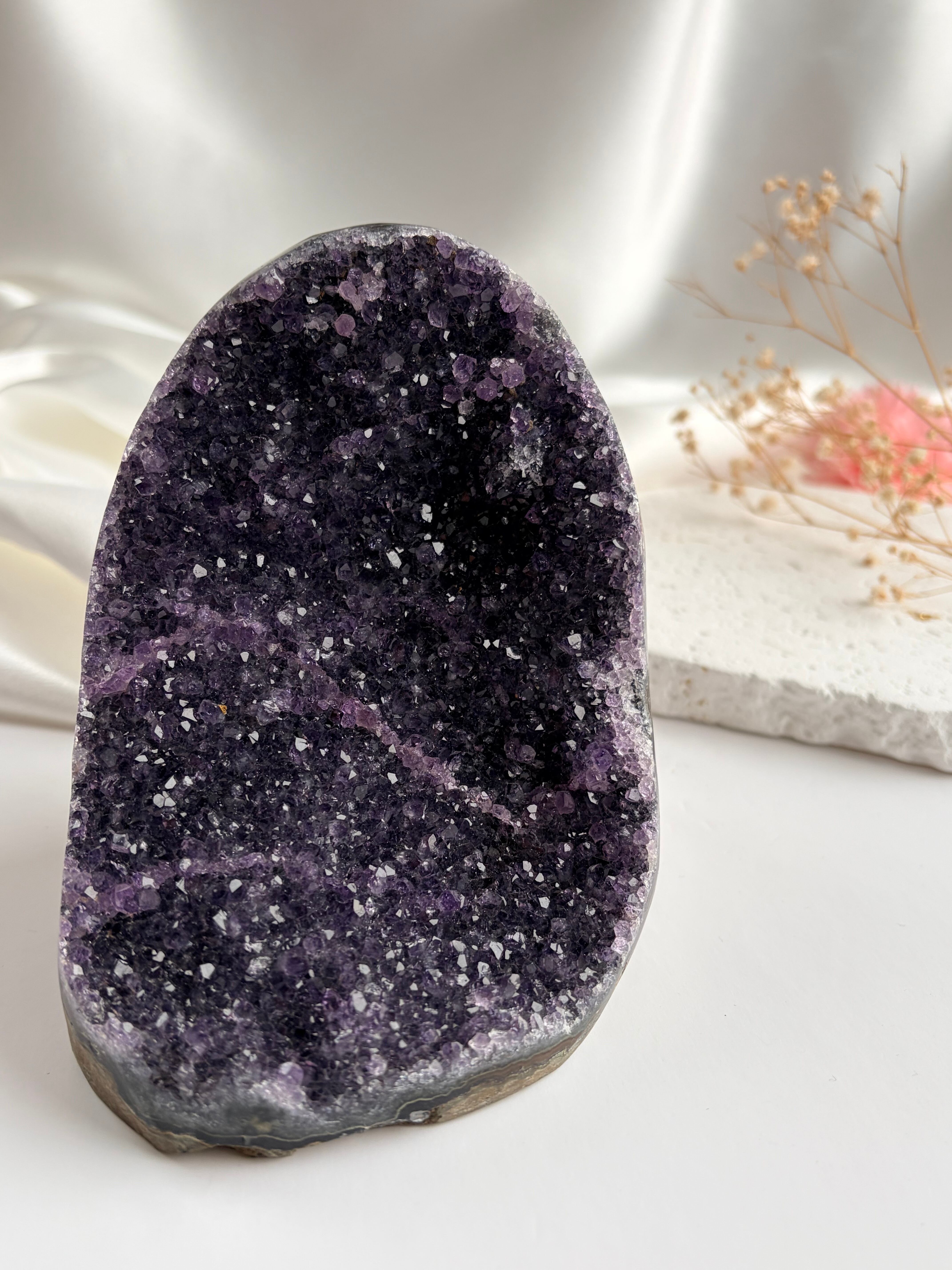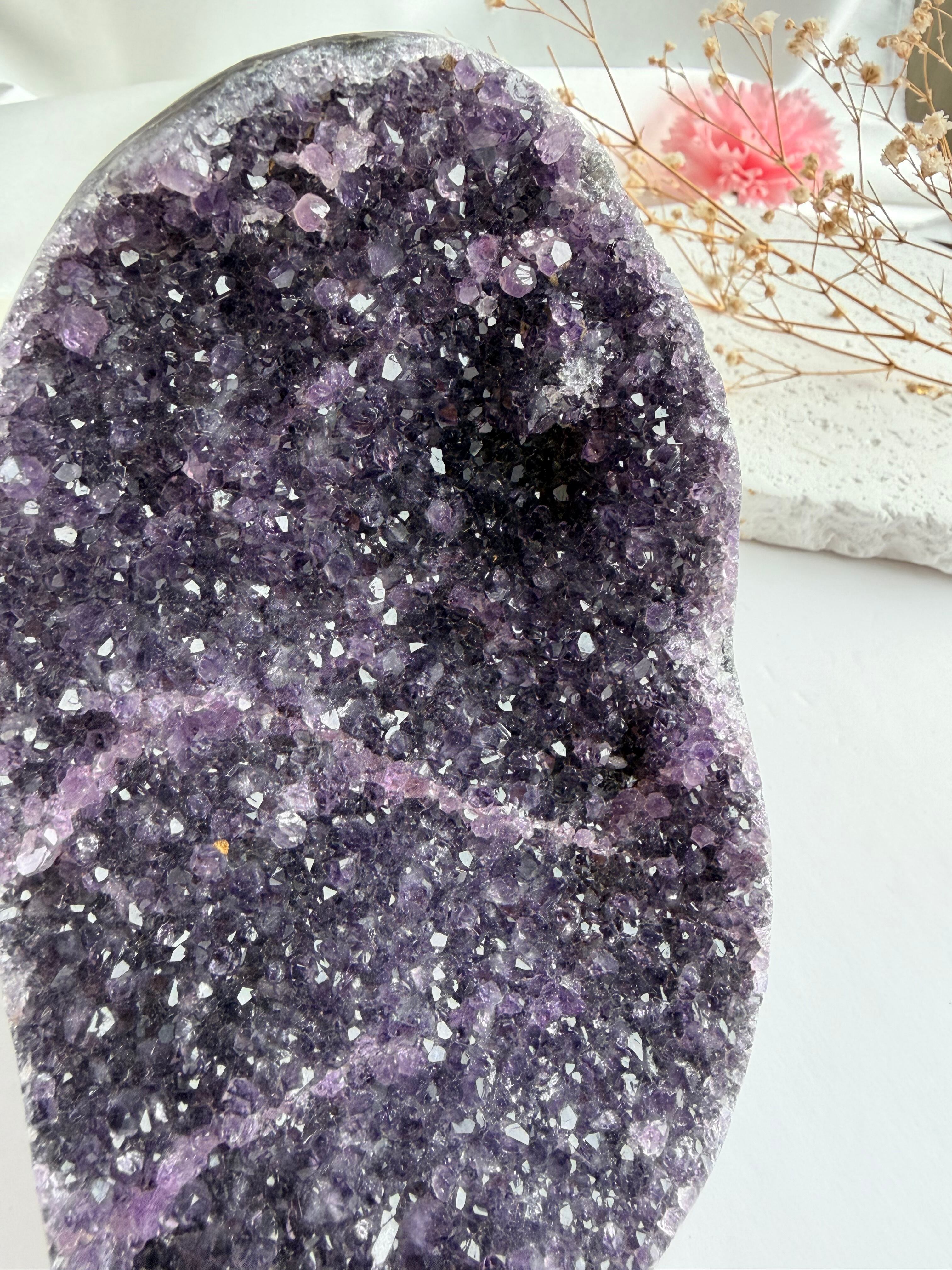 光を受けてまばゆいほどの存在感を放つ、ブラジル産アメジスト♡