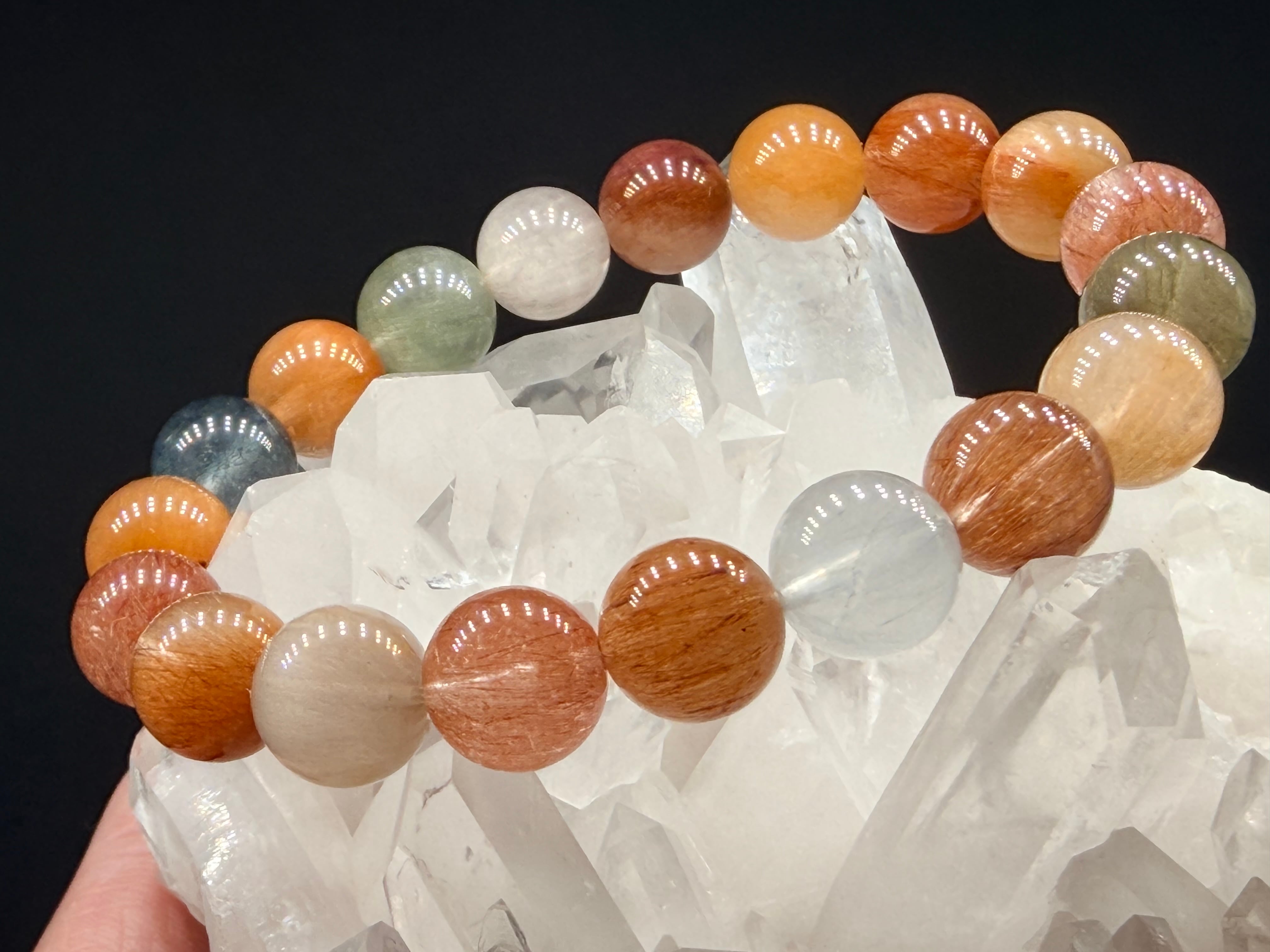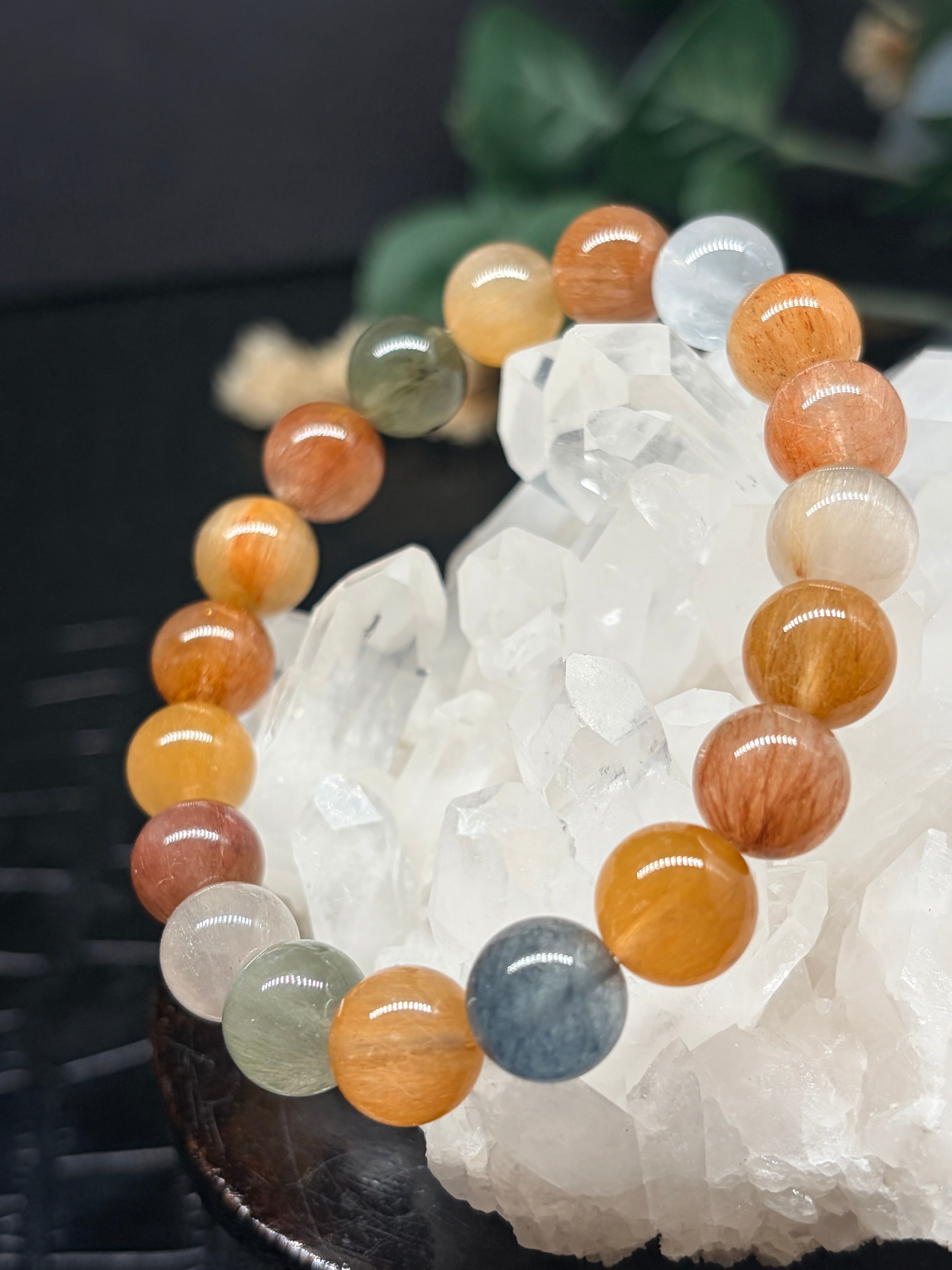 さまざまな彩りがひとつに溶け合う、マルチカラーのラビットヘアルチルクォーツブレスレットです♪