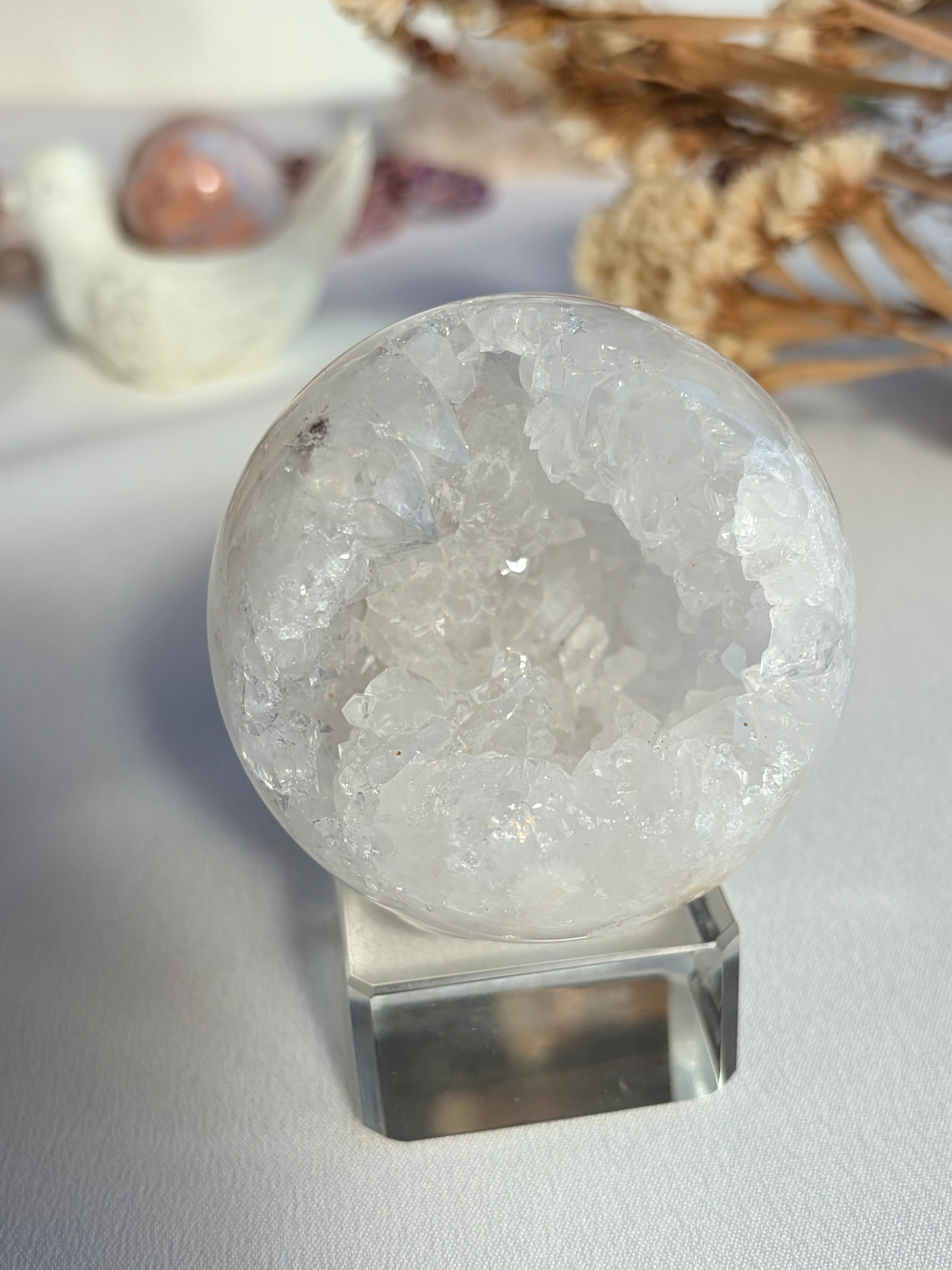なんとも魅力的な笑口(スモーリング)を持つ水晶スフィアです。