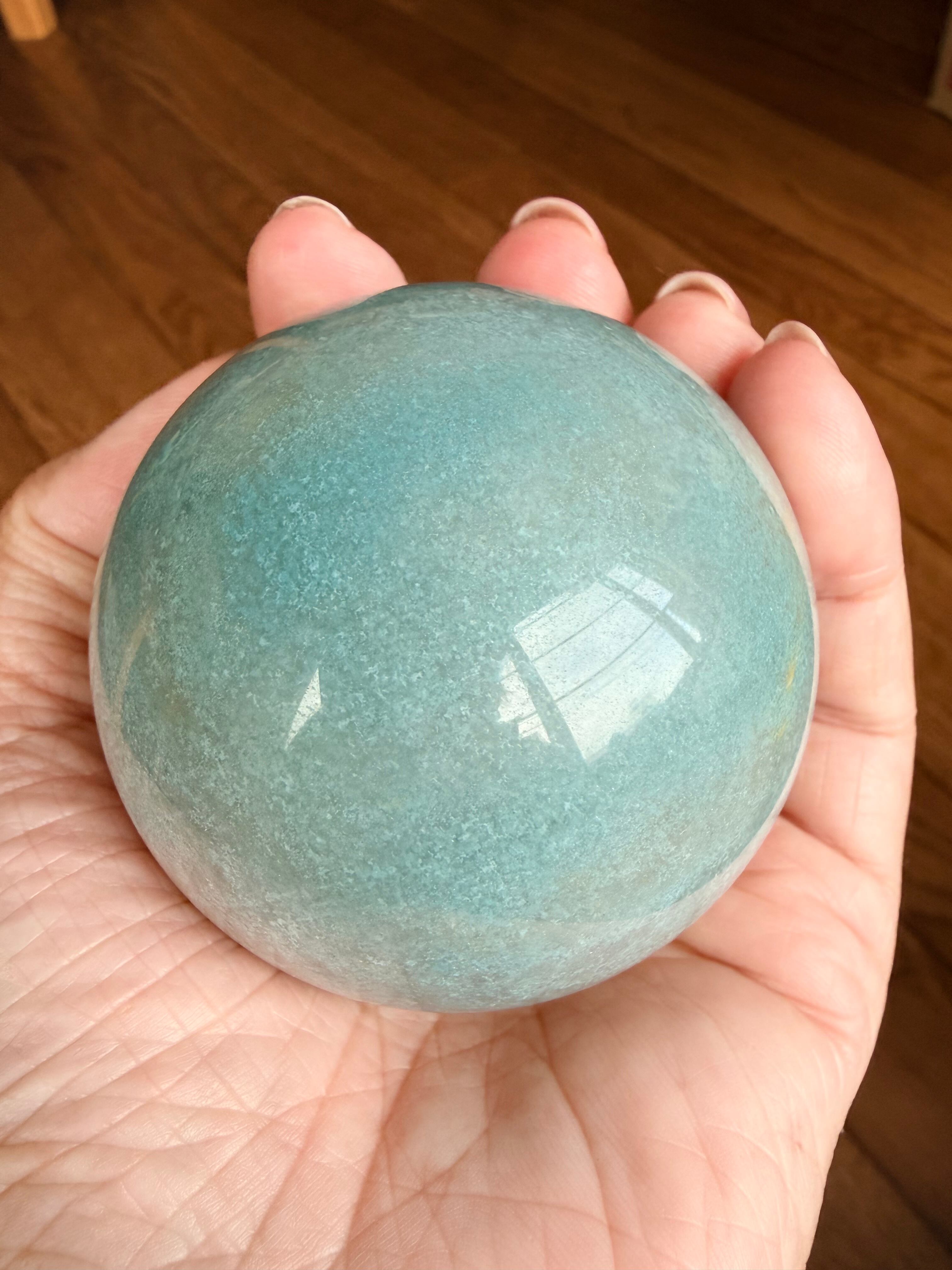 ☆癒し系天然石☆優しい水色を楽しめるトロレアイトスフィアΦ64mm