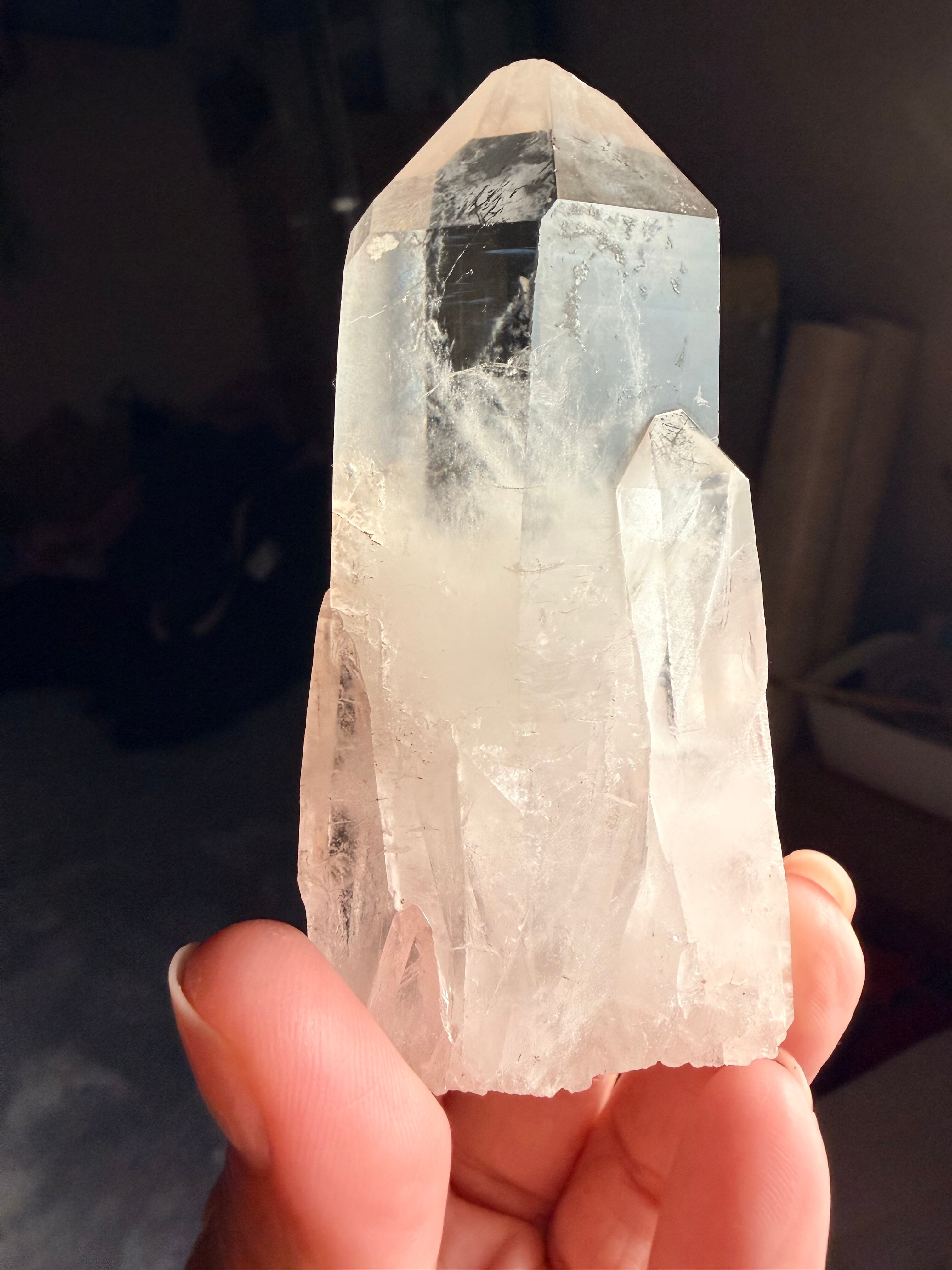 数多く産出される水晶の中でも、ごく一部にしか現れないエンジェルラダー。
